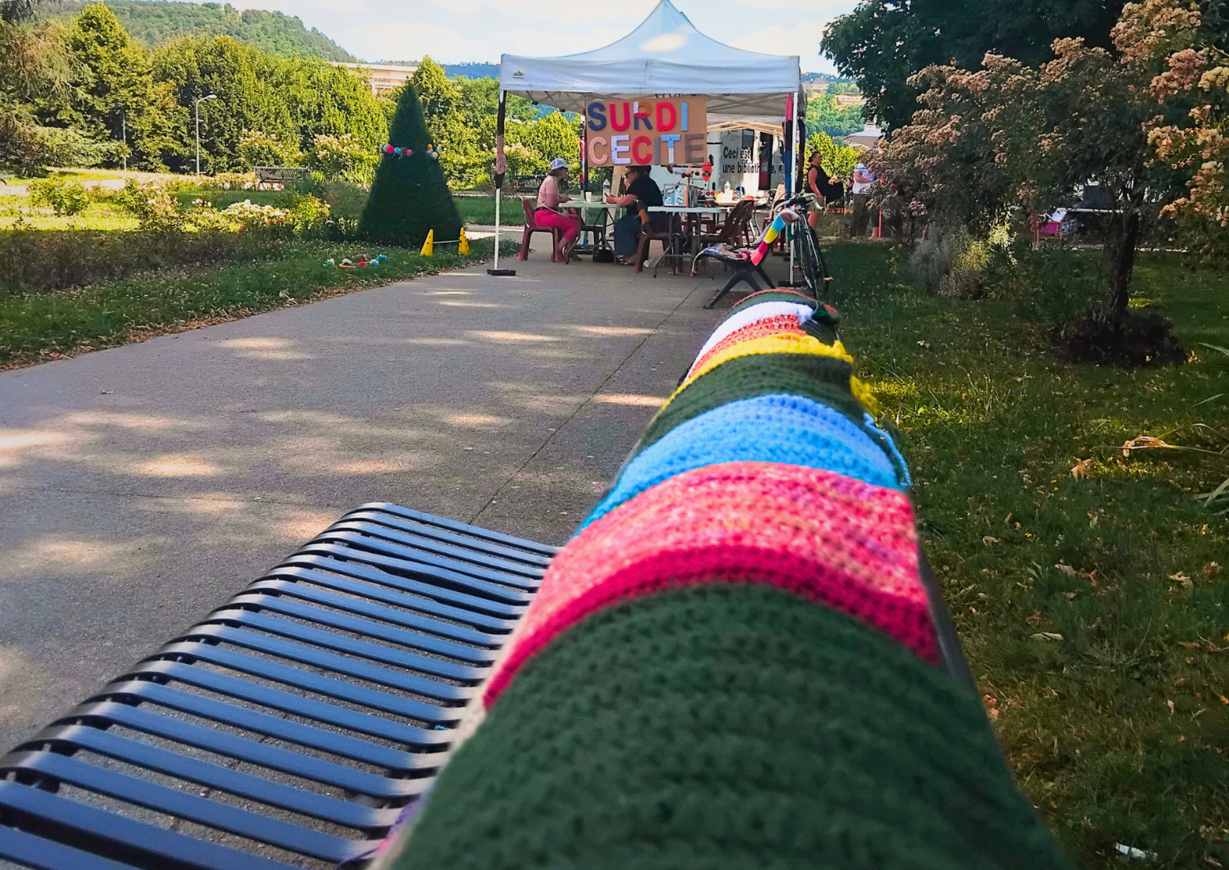 Cette journée vise à sensibiliser le grand public à la Surdicécité de manière créative et artistique à partir d’une action de "Yarn Bombing" ou tricot urbain : arbres, lampadaires, bancs, vélos… tout y passe ! Coloré, joyeux et éphémère, cet art de rue embellit l’espace public sans l’abîmer. L’objectif est simple : susciter la réaction des passants.